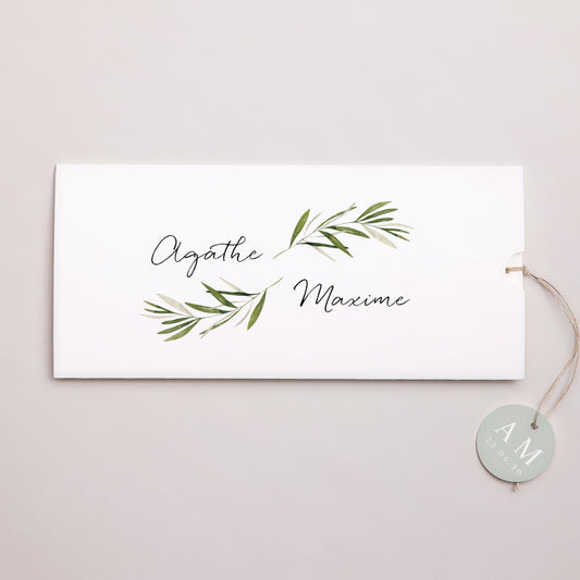 Faire-part mariage Pochette 2 cartes, étiquettebranche d'olivier IIIPrix habituel à partir de 2,08 € l'unité