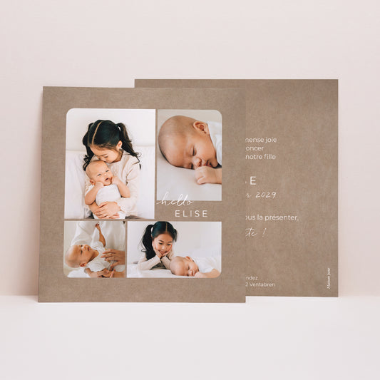 Faire-part naissance CarréComposition kraftPrix habituel à partir de 1,21 € l'unité