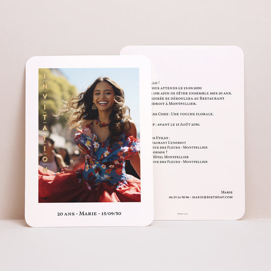 Invitations Anniversaire Adulte Portrait, bords arrondisB'day GoldPrix habituel à partir de 1,66 € l'unité