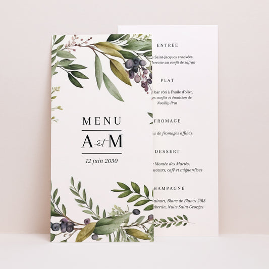 Menu Mariage Panoramique portraitL'union de l'olivierPrix habituel à partir de 1,21 € l'unité