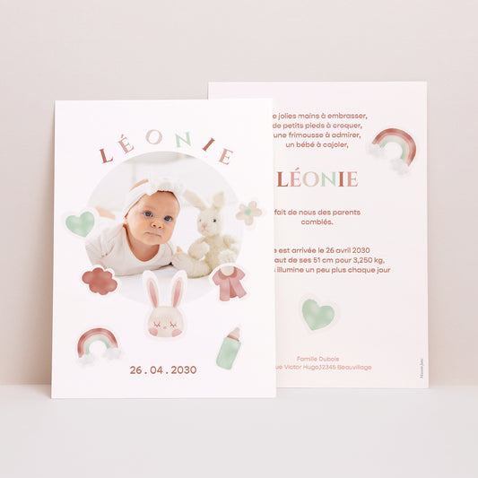 Faire-part naissance Paysage, bords arrondisMon doudou Lapin Vert et RosePrix habituel à partir de 1,31 € l'unité