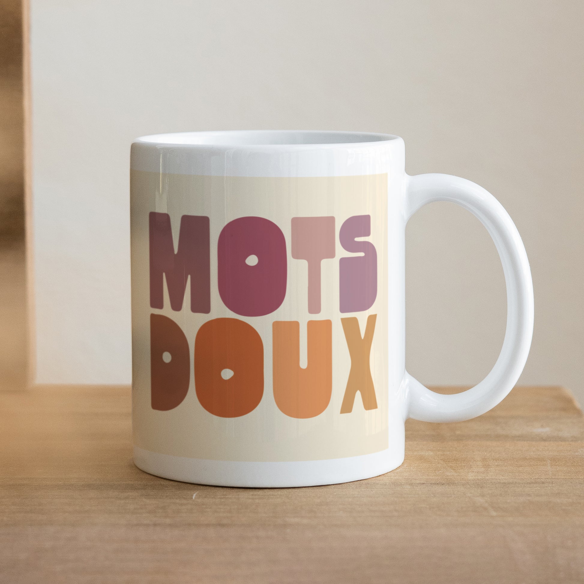 Un mug plein de douceur, avec un design épuré et des mots tendres aux couleurs automnales.